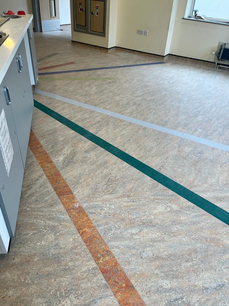 - Forbo Marmoleum to all corridors and communal areas, including custom hand-cut inlays and patterns, tailored to suit the unit’s design scheme and aid with visual zoning