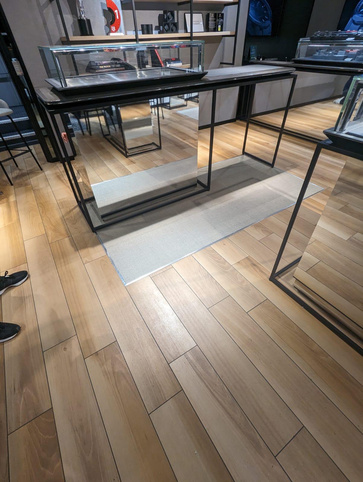 The new flooring provides a sophisticated, natural aesthetic that aligns with Tag Heuer’s luxury brand image while delivering the resilience required for a busy retail environment. The sisal carpet’s texture enhances the store’s contemporary design, and the Durafit system guarantees stability under heavy foot traffic.
